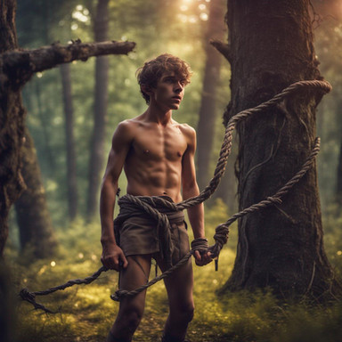 Gabe is really freaked out after the girls volleyball team left him tied up in the woods. He had been going around talking about how Volleyball was a "Sissy Sport" and how Volleyball players would never make it through a single football drill. They devised a special drill for him, an ESCAPE DRILL! Surrounding him after practice, Lily and her pack dragged him to the woods behind their school and strung him up!May be hours before people find him......who knows maybe even a day or two?