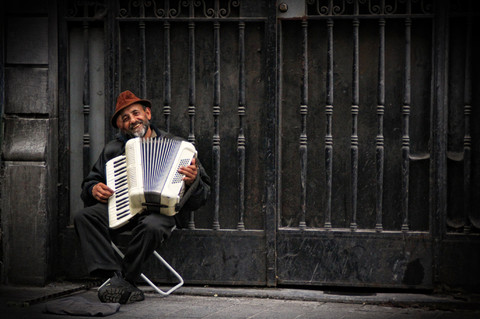 Clever idea to use blue toning, it gives a special atmosphere and tackles with the strong light.
