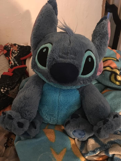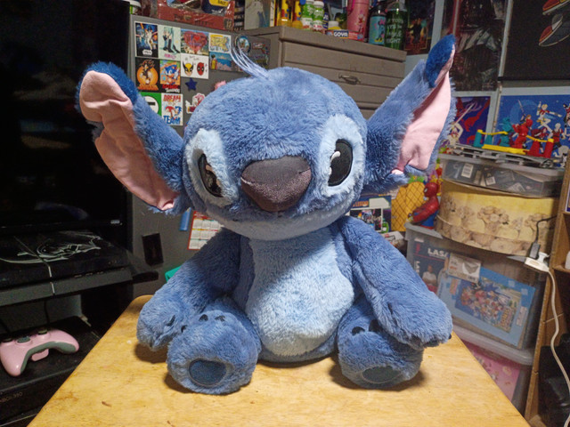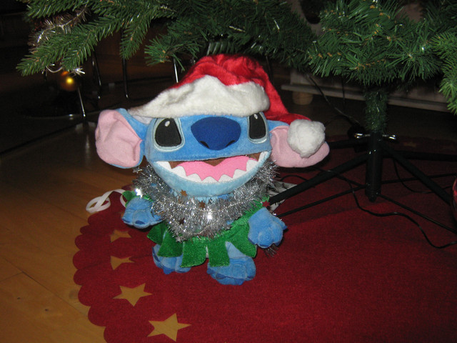 haha lol well yesterday me and my mom were in the mall and found this disney store, so we looked around i and saw this christmas stitch! i couldnt resist but buy him! ^^ hes so soft! lol XDRelated content