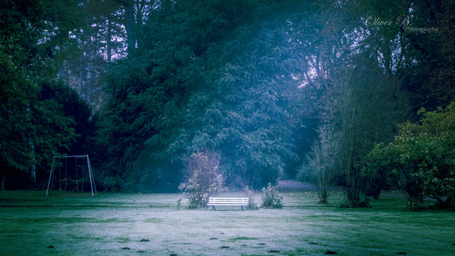 #bench #fog #mist #path #seaside #shore #not_ai_generated #blue #flower #photography #spring #liverwort