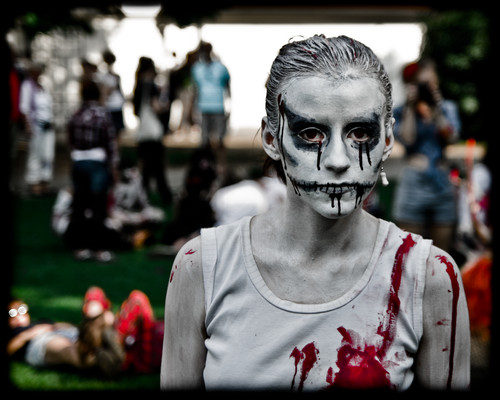 There seems to be several annual Zombie Walks in the UK. Quite odd you haven't witnessed one.Β