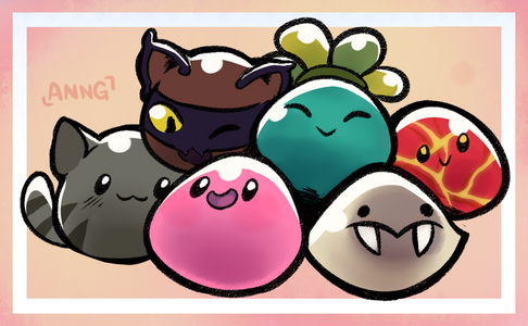 Here have a bunch of slimes in this new style bcs why not. Also i swear if i could turn these into stickers i would 😔👌
