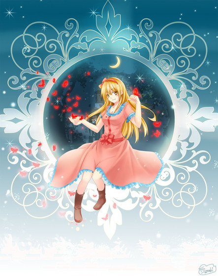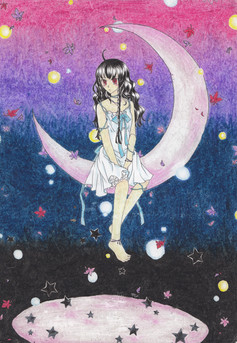 WOW! This is one of the most beautiful drawings I've ever seem You make it ALL perfect o.o The notes, the Bg, the girl... This is totally GREAT! I love the flowers, you did them very detailed :3 and the effect of the clouds and the moon... I've just fallen in love with this pic