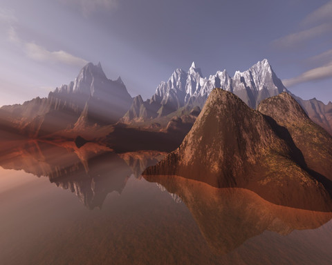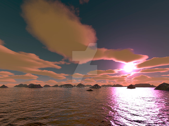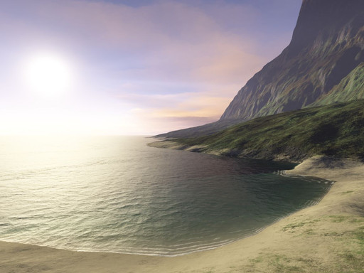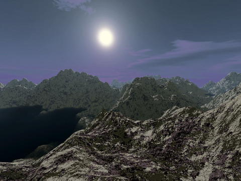 well... from the thumbnail i thought it was a photo...! ) well anyway seems pretty good image to me, i love the light comming out behind that mountain, i feel like on holidays )))