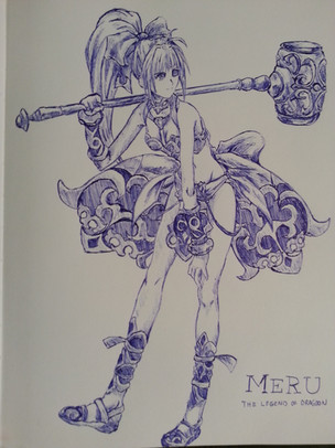 I drew a pic of Meru in the same stance around the time the game came out, i was trying to copy the drawing of her that was in the case insert i like your version better than mine!! It looks like you took your time. mines all messy and looks like crap... i was young and didn't have a good sense of lighting and i got her face all wrong lol. check it out^^ [link]