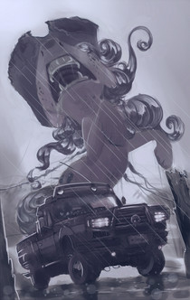 Эта объемная машина каким-то образом делает картинку неумолимо офигенной И форма переда (он стилизован под мультяшность?), и то как ты ее руками отрендерил.