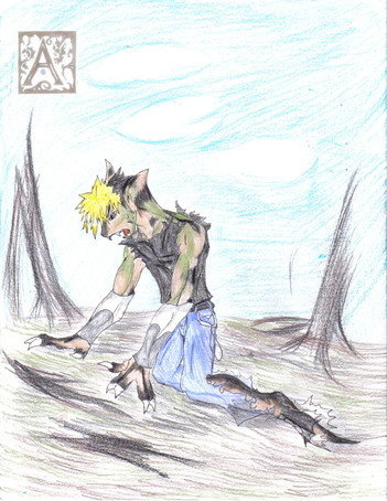 Well, its supposed to be my OC turning into a werewolf (well, more like anthro wolf) for the first time. That's why the left hand isn't not covered in fur, he is still transforming. I agree with the grass, though. I seem to have left the brush semi-transparent, so I should probably watch that in the future. Thanks for the feedback, though!