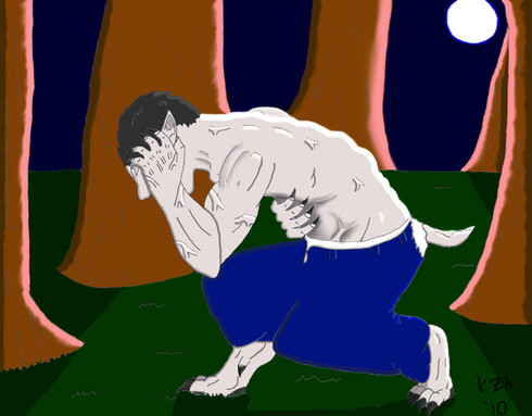Well, this goes with the first part of my OC's backstory, when he turns into a "werewolf". It does hurt him this first time, but once he gains the ability to change forms, he gets used to it.