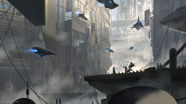 Some sort of futuristic army making it's way through a devastated city.Related content