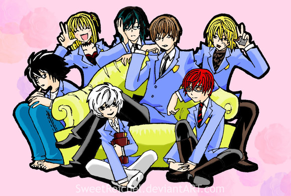 I love how they made Ryuk Mori and how Mikami just looks done with all of them. Misa Misa is perfect for Tamaki and I love how Mello and Near are the perfect match for the hitachiin twins, especially with Light-kun.