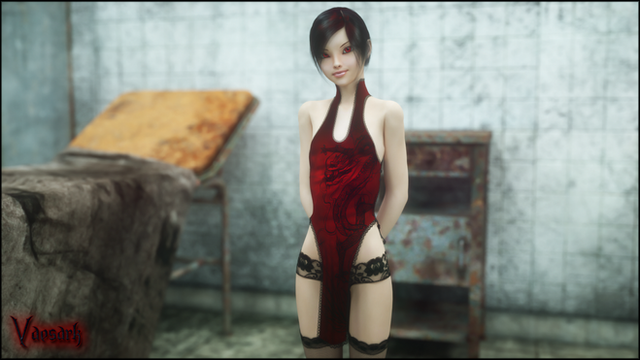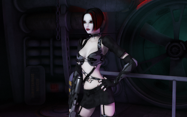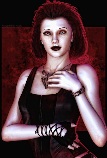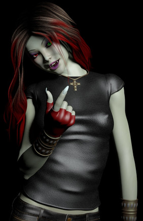 yep, thought that a glowing red light would combine well with her pale skin and black clothes.