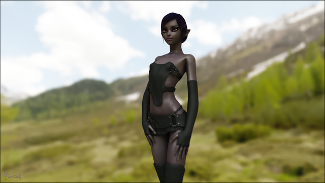 The glow around Violette puts me in the mind of silhouetted by the last rays of the setting sun, as she gets ready for the night's hunt and play.