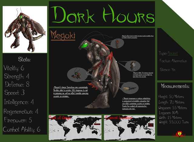 A burned out military veteran and survivor of the Umbara attacks, she sought solace in two things: Remote places at the edge of civilization, and physical activity most considered too extreme. When she could do both, she claimed, it was a release like no other. At the time of Stormback's rampage, she was in Bhutan, seeking peace and exploring the 'non-touristy' parts of the Himalayas. Against the advice of all she met, she decided to go out into the mountains without a guide, and in doing so accidentally stumbled upon one of the greatest discoveries in human history. Site Naraka, an ancient structure underneath the mountains constructed of materials not found on earth. Much like Site Xibalba in the Andes, the place was long abandoned, but completely intact. Though this one contained something no one could have been ready for. The entryway gave way to an enormous open space, inside which were numerous towering statue-like figures tethered to the walls. Most of them bore no resemblance to anything seen on earth and its enormous fossil record, but one did. And unlike the others, it had a single light on.