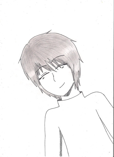 Well I find a lot of flaws with it, but I thought I otta upload something.This is a character of mine named Miotay. He wears a ruby, but right now all you can see is part of a poorly drawn chain. He is not living. I was messing with a new program thing I got with the scanner and I tried to make it more ghostly! heh heh.