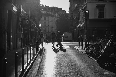 Real nice urban shot. Love the lighting on the steps, love how the people in the image are positioned...and then that dog! Just great