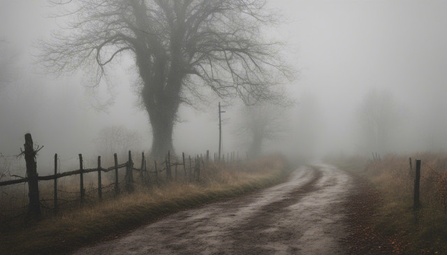 #ai #fog #ireland #leadinglines #misty #moody #road #trees #aiart #dreamup