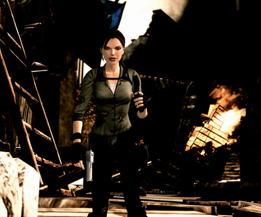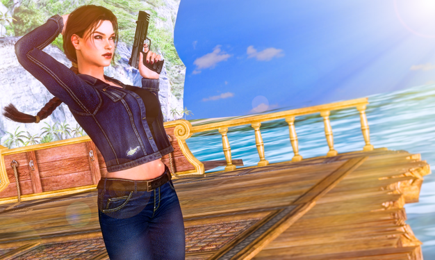 It's absurd because Lara is on the Amanda's ship. And in the game Lara don't relax herself looking at the sunset, I think XD