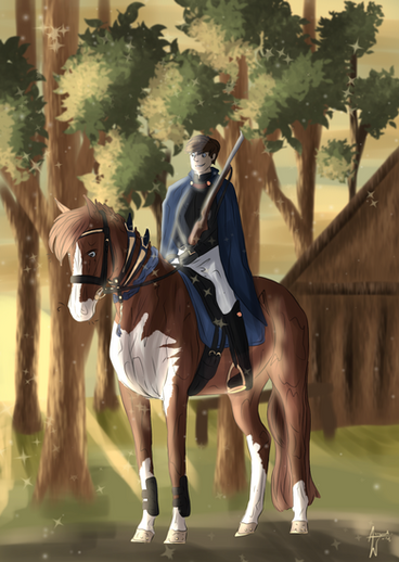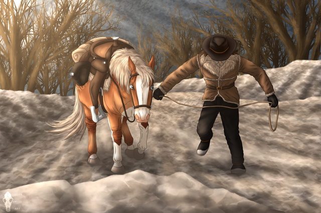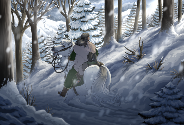 "The thick windblows grew stronger and stronger within every minute. I searched for cover in the woods while my mare under my thights spooked with every pressure theΒ wind tooked into her flanks. She barely was 4 years old and not used to massive outdoor situations like the one we were stuck in. She chopped down on her bid in her mouth and with a swift head movement she loosened my grip on heir reins. And off she went. Trying to get the control over her I led her canter in circles and as a side effect I gained distance from the group. Fuck. They were nearly out of sight as the sky continued to darken itself--"