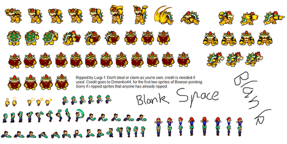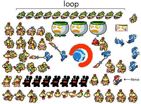 So there's that. Also, Unfortunately, in RigdeTroopa's journal he stated that heΒ won't be continuing the Koopaling sprite sheets, so on that note, we can only wait until someone makes the overworld sprites.Β Β