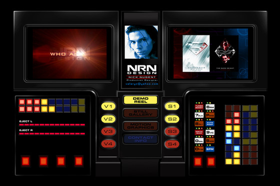 You are able to visit a couple other pages which display my demo reel, contact info, still galleries, and video clips all with Knight Rider inspired backgrounds created from scratch with interactive buttons and lights.