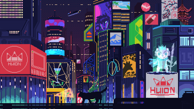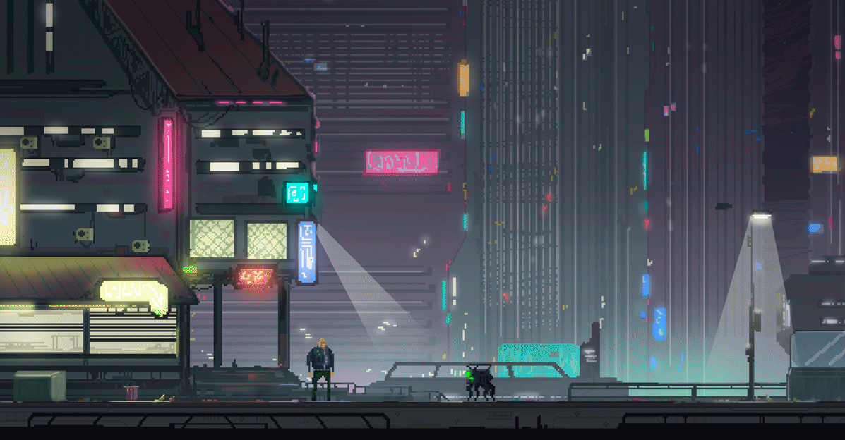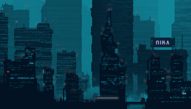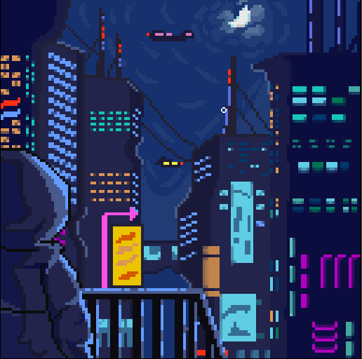 #birds #buildings #city #future #lights #neon #night #pixel #pixelart #rain #scifi #tokyo #umbrella #wires #mrvalenberg #valenberg