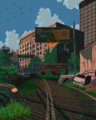 This reminds me of The Last of Us a lot. The transparency effects are used nicely and the buildings in the background are detailed well, too. Very good job