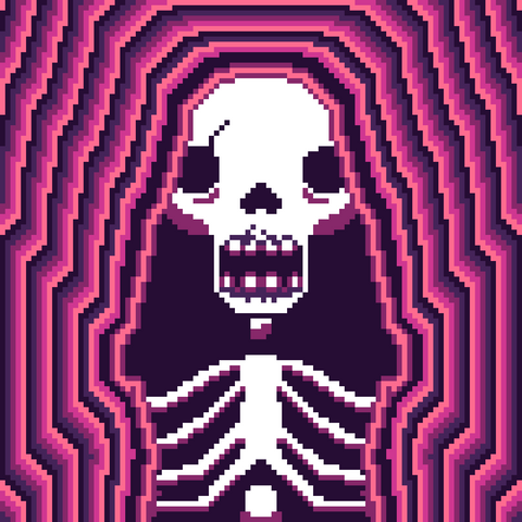 #virtuaverse #cyberpunk #digitalart #gamedev #glowingeyes #neon #pixelanimation #pixelart #skull #indiedev #valenberg