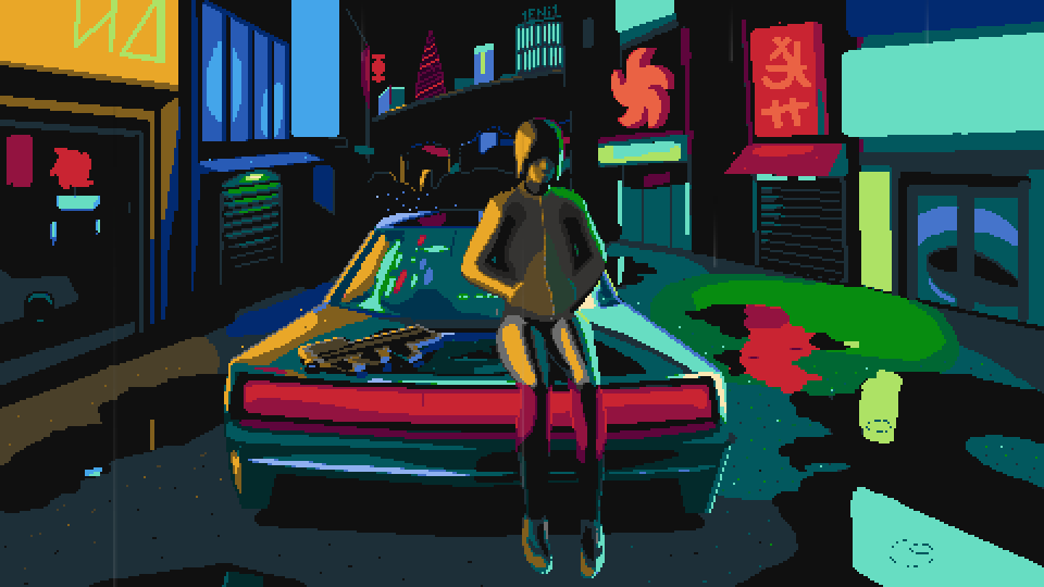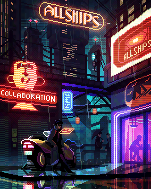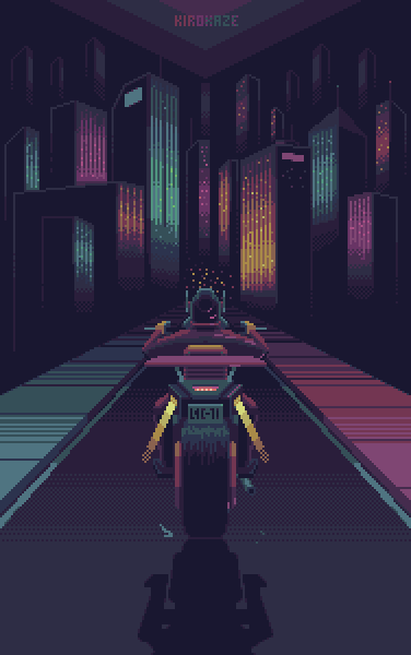 #animation #biker #gif #helmet #japanese #neon #neonlight #pixelart #rain #remember #things #mrvalenberg #valenberg
