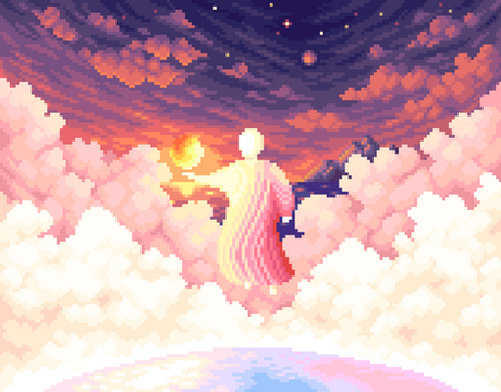 I love the mix of really pure pixel art and very, very subtle effects. Awesome piece!