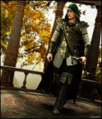 Legolas is a prince of the Wood Elves, but he is of a different race of Elves, the Sindar or "Grey Elves". With his father, he settled among the Wood Elves to return to a simpler lifestyle. In this scene he is in his home, the Woodland Realm of Mirkwood, practicing with the bow. In moments, his father Thranduil will summon him to court and tell him that the creature Gollum has escaped, and that he is to meet with Elrond of Rivendell to discuss the matter. This will set his feet upon the path of joining the Fellowship of the Ring.