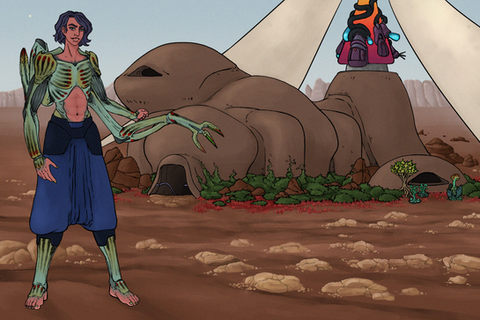 Ran is a citizen of the Tsan Chan Empire in the year 6525. He's mostly an excitable nerd who spends most of his time in the Hall of the Past, studying The Historian's collection and pouring over ancient media. He wants to write a book but he keeps starting and getting distracted by a new discovery and restarting. He works part time in the Deeps aquaculture pods for some extra monthly resource tickets.
