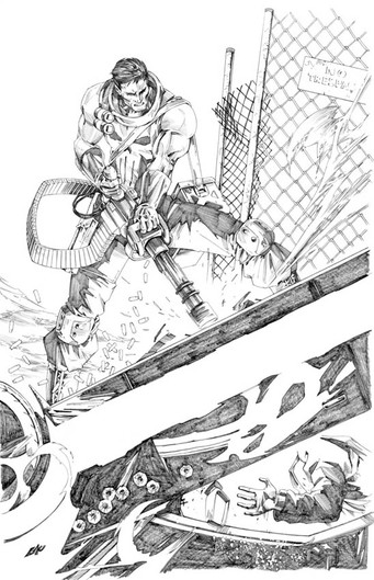 this would work really well as a cover to a comic..... how'd you design the gun, did you use any reference? Whats your process on drawing something like that?