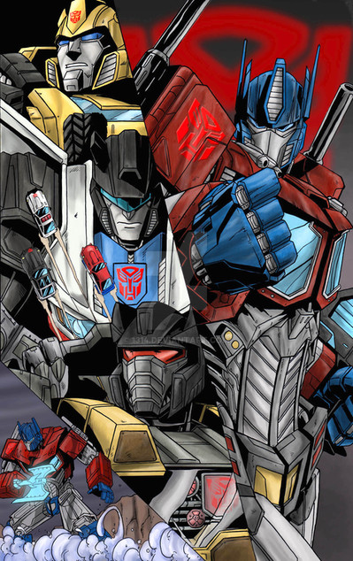 This is one of those reasons I love Rumble, you've managed to capture just how gutsy he is while showing the immense scale of the rest of the 'bots in a very eye-pleasing way. It really draws you up the page, from little Rumble all the way up to Omega Supreme. Loving it!