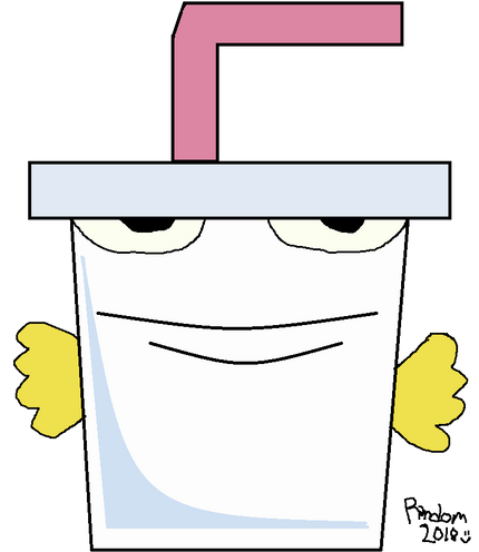 A drawing I did on Master Shake.A milkshake cup featured in a cartoon called "Aqua Teen Hunger Force".