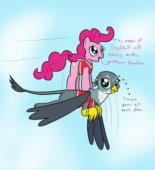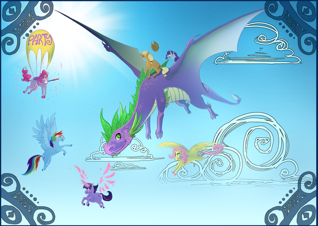 It'd be wonderful if you made more pony works (humanized or anything, doesn't matter). I really like this style of yours as applied to 'em. That loose flowing shirt and those shirts with the socks and sneakers, that colour scheme they got. That lovely pose, that amazing hair that's like mid-puff-explosion. The sheer cheerfulness of the pose and the impossibly cheerful expression. Love it so much. Also, the additional elements (balloons, cupcakes and stuff) are positioned well. The streamers in particular help the viewer's eye be guided to her figure naturally. Great job!