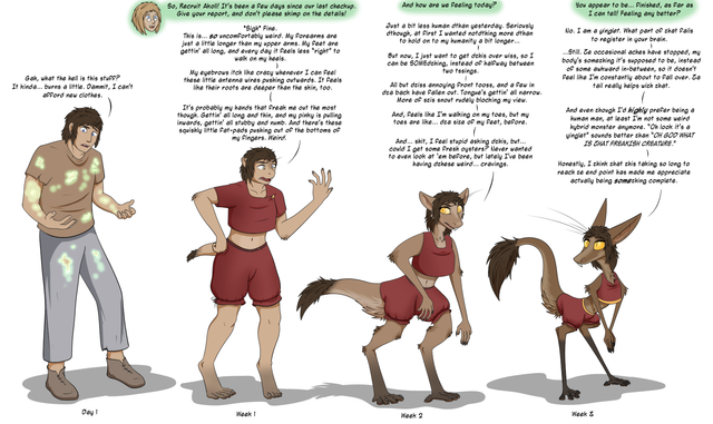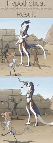 Commissioned by Tain over at www.furaffinity.net/user/tainDespite a sudden shift up the evolutionary ladder, his/her priorities remain the same. And for effect, imagine the grey yinglet's legs kicking like this: Yinglet Run