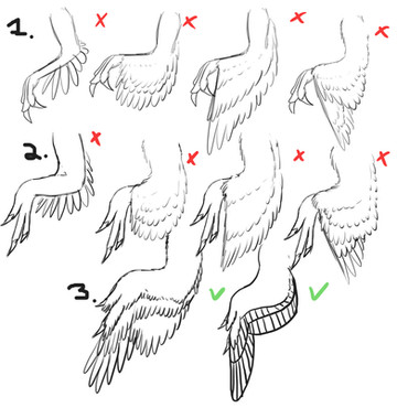 Here are the links that help explain more about feathers and how wings, both feathered and bat wing work and anatomy of them. It alwaYs helps to study and learn about your subjects!