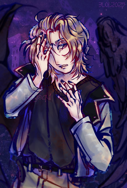 #digitalart #angel #digitalpainting #fanart #malecharacter #blood #halfbody #lads #sketch #sylus #qinche #loveanddeepspace #sylusloveanddeepspace #2025digitalart #silverwingfiend