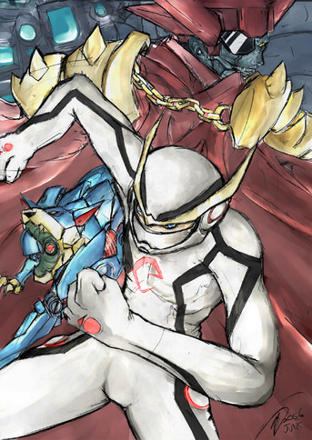 but he looks so freaky and cool, they made a movie to see how well it would do...but it didn't do so well and a series was never made, so I kinda did this drawing as a possible mid series uber boss battle thing 8D