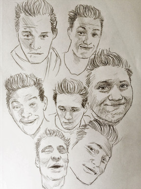 Starting from the left with the grey sketch to the right ending with the red. It had its ups and downs but I really enjoyed taking my time and understanding the angles and references in order to understand his features. I had a lot of fun and proud of myself, its not always pretty in the beginning but as long as you have fun then thats all that matters!