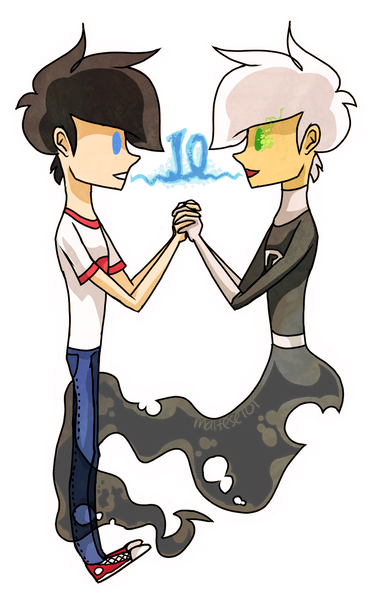Full cover for my new fic, Who We Are ( [link] ), another Danny Phantom-Teen Titans crossover fic. I need to stop coming up with crossovers. I tried (Key word: TRIED) to make it more Teen Titanish style and failed horribly...(Half the time, people on Teen Titans look like sticks, hehehe )