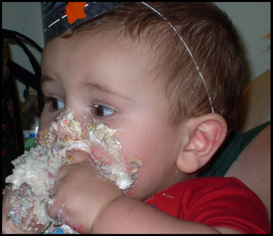 This is my nephew after eating his first cake. He had a gob of icing in his hand and went to go rub his eyes. Watching a baby eat cake is hilarious.Related content