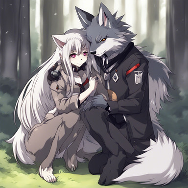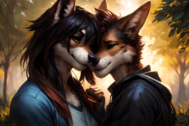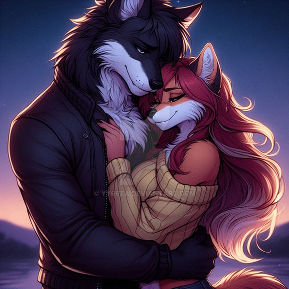 #animestyle #couple #furryanthro #werewolves #embracehug #aiart #ai_generated #stable_diffusion