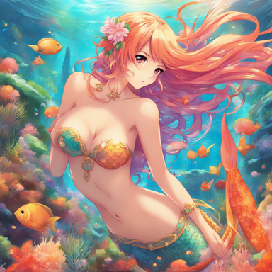 A bold red-tailed mermaid, curious about the world above.Created in Cetus-mix on PixAI.
