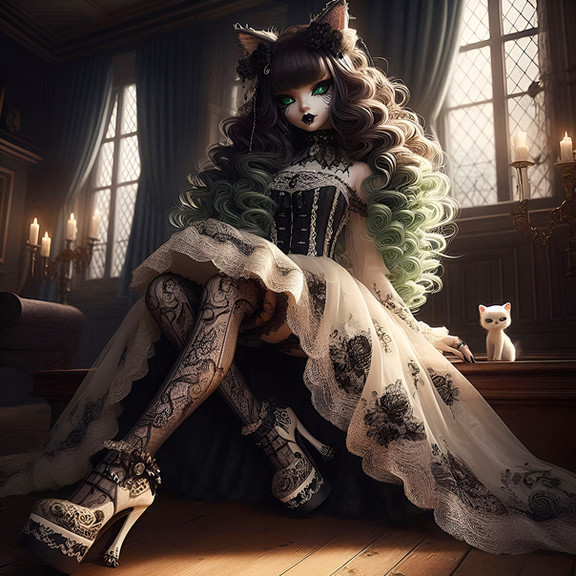 #cosplay #catgirl #dress #baroque #furryanthro #noble #prettygirl #realisticanime #aiart #anthro_female #ai_generated #pixai_art
