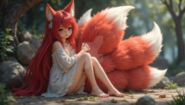 #animegirl #fox #flowersnature #foxgirl #kitsune #spring #woods #woodsforest #aiart #ai_generated #pixai