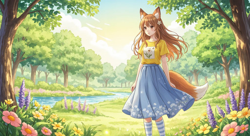 #characterdesign #fantasyart #characterillustration #anime #forest #originalcharacter #flowersnature #foxgirl #kitsune #spring #woods #woodsforest #aiart #ai_generated