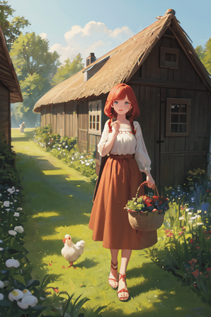 It's not all work in Barholt - Larka takes a break from tending the poultry to eat her lunch.Created on PixAI using Cetus-mix-v2