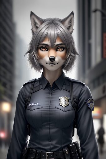 #anthrowolf #citystreet #policeofficer #wolf #realisticanime #pretty_girl #aiart #wolf_girl #furry_anthro #ai_generated #stable_diffusion