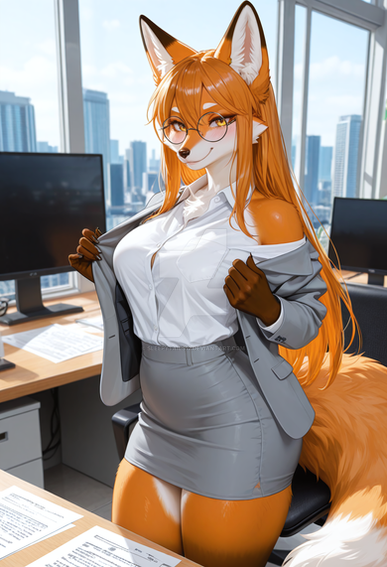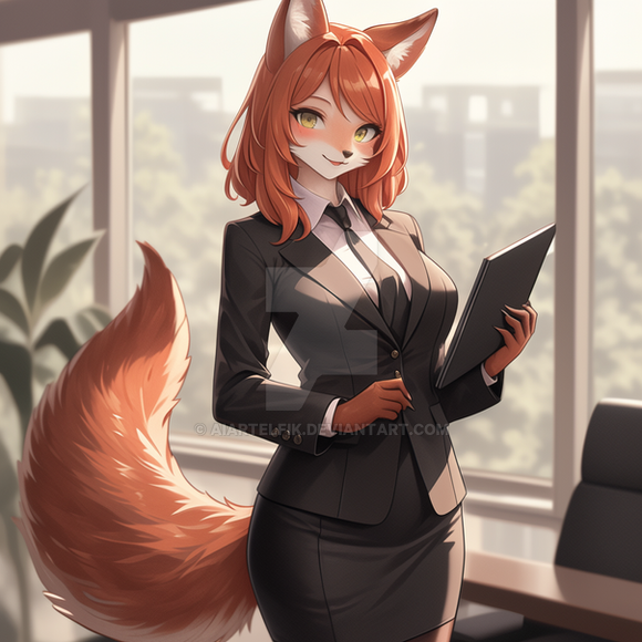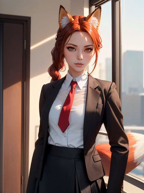 #anthrofemale #foxgirl #furryanthro #officelady #prettygirl #realisticanime #aiart #ai_generated #stable_diffusion